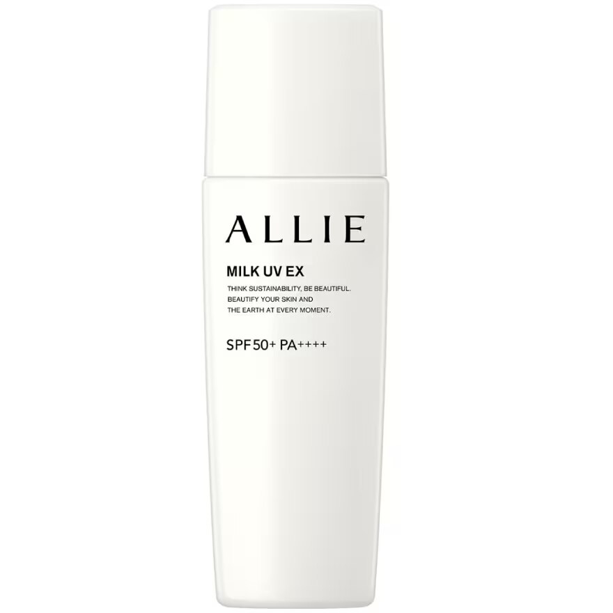 Allie Chrono Beauty Milk UV EX SPF50+PA++++ Think Sustainability. Be Beautiful. MILK UV For face and body. The smooth emulsion adheres adheres evenly to the skin as if wrapping around bare skin. Moisture without leaving white residue for sustained beauty. A non-tightening emulsion UV product resistant to sweat. water and friction. Do not rub off onto masks. Non-texture lasts. And give beauty finish that lasts. Does not rub off onto masks/Can be removes with soap/Prevents debris PM2.5. Contains moisturizing (SODIUM HYALURONATE) Can also be used as makeup base 2022. ALLIE formulate all its products using a beach friendly formula and takes into account the regulations of some countries. regions and beaches. It will propose the new value of Think Sustainability. Be Beautiful Environmentally friendly. Packaging and tube made with environmentally friendly material. Reduced plastic.