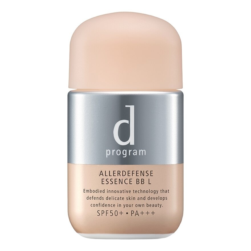 d Program Allerdefense Essence BB (L) SPF50+ PA+++ 40ml. Essence type Sunscreen with BB effects protects delicate skin prone to skin problems from UVA//UVB rays and fine particles such as pollen dust and air pollution also naturally covers redness and dullness Key Product Benefits Protects delicate and sensitive skin from air pollution and other skin allergy triggers such as pollen and dust by Allerbarrier Technology NEO Protects skin from UVA/UVB rays with SPF50+ PA+++ Prevent static electricity with ingredients that control the moisture level depending on the surrounding humidity Keeps the skin moist and beautiful for many hours also nurtures skin from facial dryness during the day with DP Complex and super hyaluronic acid Covers pores and redness typical of delicate skin with mineral cover powder Long-lasting makeup up to 12 hours Contains ingredients that filter blue light Non-chemical formula UV absorbent free Makes makeup sit better by preventing it from smudging due to sebum SUN CARE SPF50+ PA+++ Sunblock Sunscreen Suncare