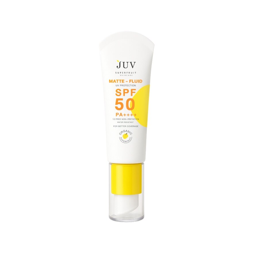 JUV Matte-Fluid UV Protection SPF50 PA++++ Press the sunscreen onto your palm. Apply all over the face and neck. It is the last step after maintenance. Selling point Beautiful in every light and conceals smooth skin in one step. Conceals and adjusts the skin to be smooth and beautiful every time you use it. Protects the skin up to 5 times (UVA rays. UVB rays. Visible Light blue light from screens. IR high heat light waves. Pollution). Stops harming the skin from all light waves. for 12 hours. Lock in freshness from Active Ingredient to nourish the skin with Fresh Cell TM technology. Controls oiliness. doesn t clog pores. and is free from 10 irritating substances. Provides light but light coverage and combines technology to protect the skin from all light waves (UVA. UVB. Visible Light. IR). pollution and small particle dust. With extracts to revitalize and nourish the skin to fight free radicals from surrounding factors with the power of Supper fruit. enhanced with special extraction technology. Lock the freshness of the extracts for maximum benefits for skin care. Adjusts the skin to be smooth and beautiful every time you use it. comfortable on the skin. controls oil. doesn t clog. and is waterproof and sweat proof. Gentle for all skin types. free of 10 irritating substances. - Mineral Oil Free - Paraben free - Fragrance free - Hydroquinone free - Retinol free - Octocrylene free - PPG PPG free - Phthalate free - Aluminum free - Harsh chemical free