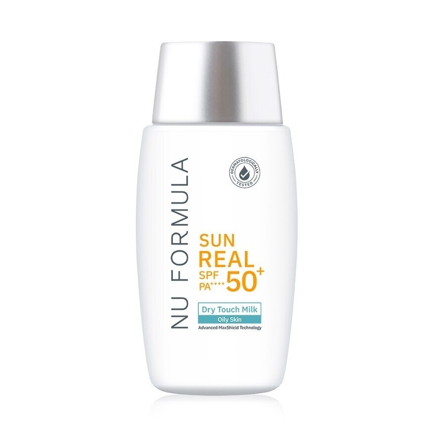 Nu Formula Sun Real SPF50+ PA++++ Dry Touch Milk First time for sunscreen with the REAL SPF. The Advanced Maxshield Technology from Nu Formula is the combination of sunscreens that help to protect the skin to the maximum extent, with the nanoparticle sunscreen. The SPF Booster help to increase dispersion ability to ensure the sunscreen